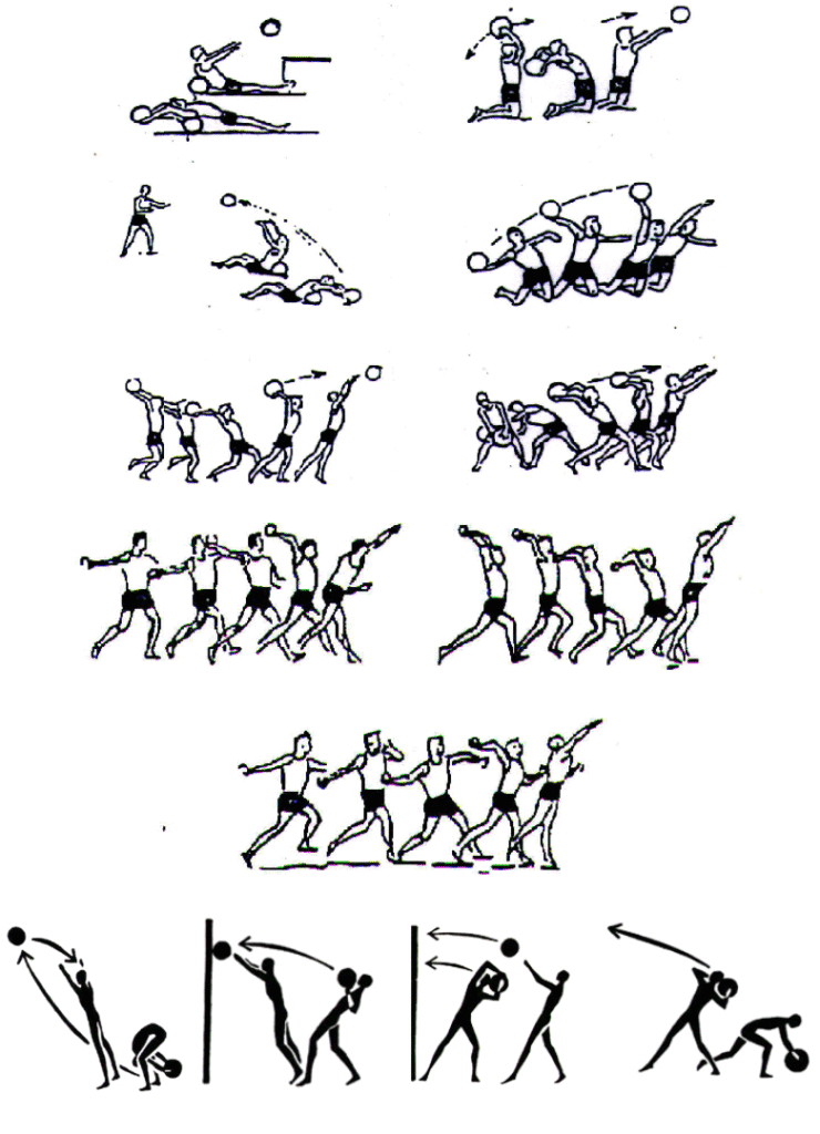 - Lanzamientos con balones más pesados (3–5 kg) y más ligeros (1–2 kg).